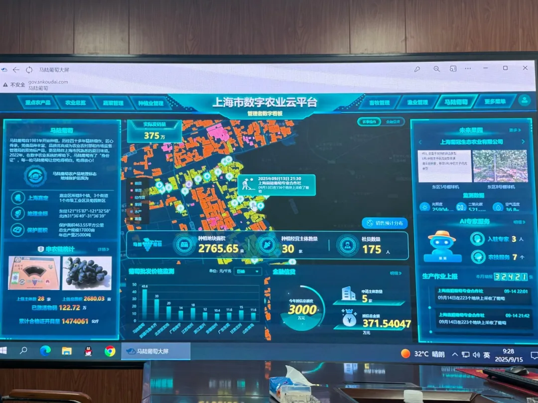 “将RWA运用到农业领域,相当于给农业资产办了一张‘数字身份证’。”左岸芯慧公司董事长张波解释,“过去农户说‘我的葡萄是自然生长的’,很难证明,但数据可以。”记者在上海市数字农业云平台的地图上看到,只需轻点鼠标,“马陆葡萄”相关地块的土壤温湿度、光照强度等数据均可实时查询,农户的农事操作也都同步记录,全程可追溯。